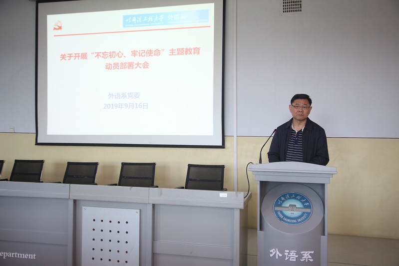 2019年9月16日,外语系分党委在41#422召开了全体党员大会,对开展“不忘初心、牢记使命”主题教育工作进行了动员部署,分党委书记赵欣同志主持会议并做动员。