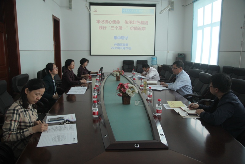 按照公司“不忘初心、牢记使命”主题教育集中学习计划安排,外语系于9月20日在41#417组织班子成员围绕“牢记初心使命,传承红色基因,践行‘三个第一’开展集中研讨。专题研讨由系党委书记赵欣主持,班子成员全体参加,系党委委员李丽、由春桥列席研讨。