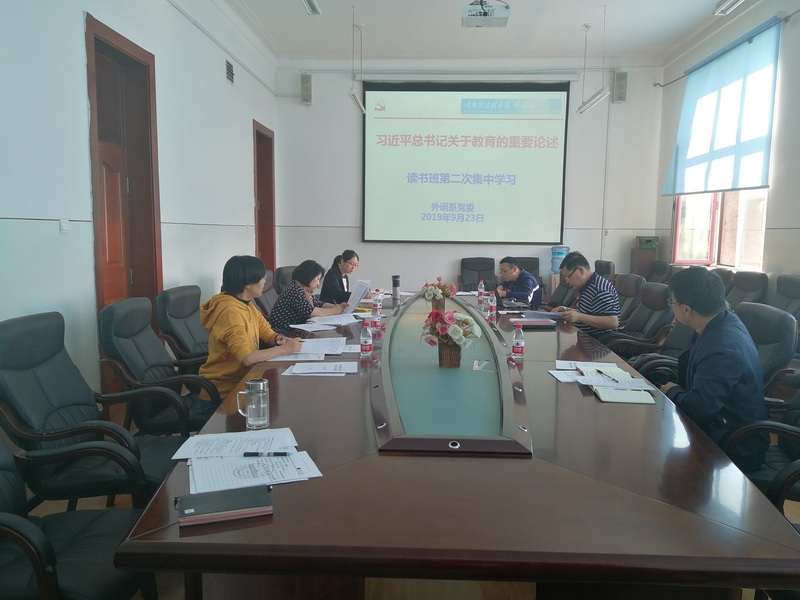 根据公司党委统一部署,外语系领导班子于9月23日15:00在41#楼417组织开展了“不忘初心、牢记使命”读书班读原文学原著第二次集中学习。集中学习由系党委书记赵欣主持,班子成员全体出席。