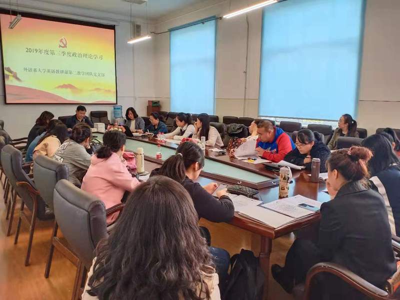 上午,党支部全体教师按照《外语系第三季度政治理论学习及党员主题党日活动学习资料汇编》,就习近平总书记在“不忘初心、牢记使命”主题教育工作会议、在中央政治局第十五次集体学习时、在全国教育大会上的重要讲话精神进行了集中学习;就习近平总书记关于制造强国、网络强国、海洋强国的系列重要讲话精神以及关于科技创新和国际合作方面的重要论述进行了集中学习,让我们更加明确未来努力的方向。