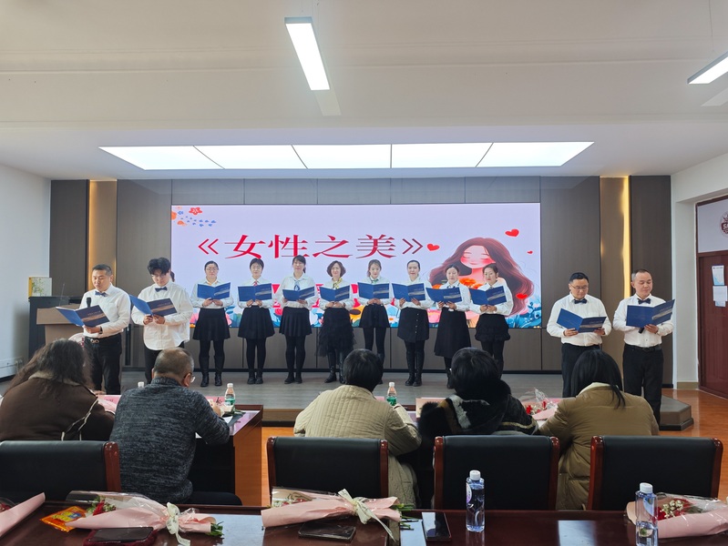 将现场气氛推向高潮的,是研究生公共英语教研部的《四季组诗》和院直党支部的《女性之美》朗诵。这两支队伍不仅着装整齐,还搭配了精心设计的展现本部门教职员工风采的视频。优美的画面与动人的朗诵相得益彰,生动地展现了女性在四季更迭中的坚韧与柔情,以及女性独有的魅力与力量。
