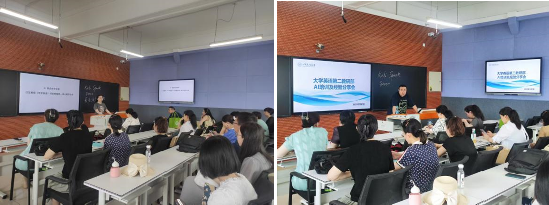 202571日,承担2024级大学英语教学任务的近30位教师齐聚41#408教室,成功举办了“AI培训及经验分享会”。基础级负责人李子春、发展级负责人岳铁艳和教研部主任王欣分别从各自级别的角度分享AI技术在英语教学与科研中的应用实践,带来一场兼具理论深度与实操价值的专业分享。