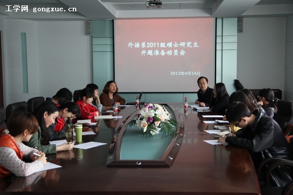外语系于4月24日上午召开2011级硕士研究生开题准备动员会。外语系副主任王晓姝、外国语言文学学科负责人孙启耀和2011级全体硕士研究生参加了会议。