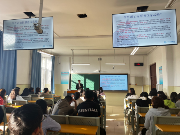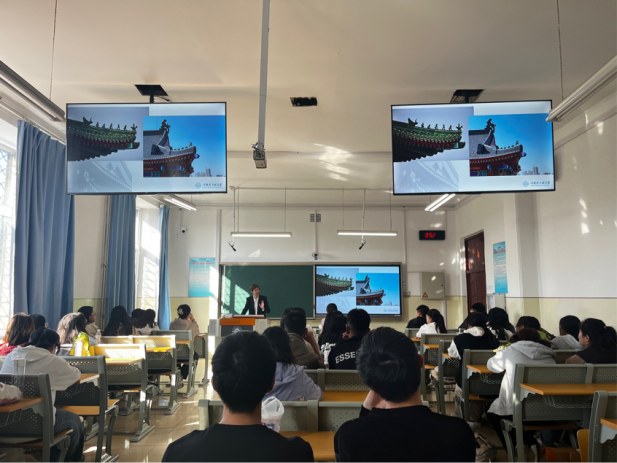 吴越书记以“牢记嘱托,再立新功”为切入点,带领同学们学习习近平总书记视察公司重要讲话精神,强调外语学子应牢记总书记嘱托,“树立科技报国志,刻苦学习钻研,勇攀科学高峰”。吴越书记回顾在战火中诞生的“哈军工”自建校以来完成了数百项高水平的科研成果,公司70年的风雨变迁始终与新中国命运息息相关,作为外语学子应传承“六个始终”的哈军工精神,通过弘扬中国传统文化,讲中国事、发中国声积极服务国家战略需要。最后,吴越书记勉励同学们“要多读书,要有规划,要不怕输,要敢担当;不要责怪抱怨,不要浪费时间,不要破坏规矩,不要放纵自己”,赓续“哈军工”红色基因,筑梦蔚蓝海洋,努力为成为有家国情怀、全球视野、专业本领的复合型外语人才的目标而不懈奋斗。