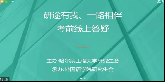 专题活动二:线上考前答疑活动。2021年12月20日晚6点半,研究生会邀请了2021级外国语言文学专业研究生王悦、荣佳洺、王思然三位同学为大家线上答疑解惑,针对答疑活动前收集的各类问题,三位同学逐一解答,为即将踏入考场的同学们排忧解难,树立信心。