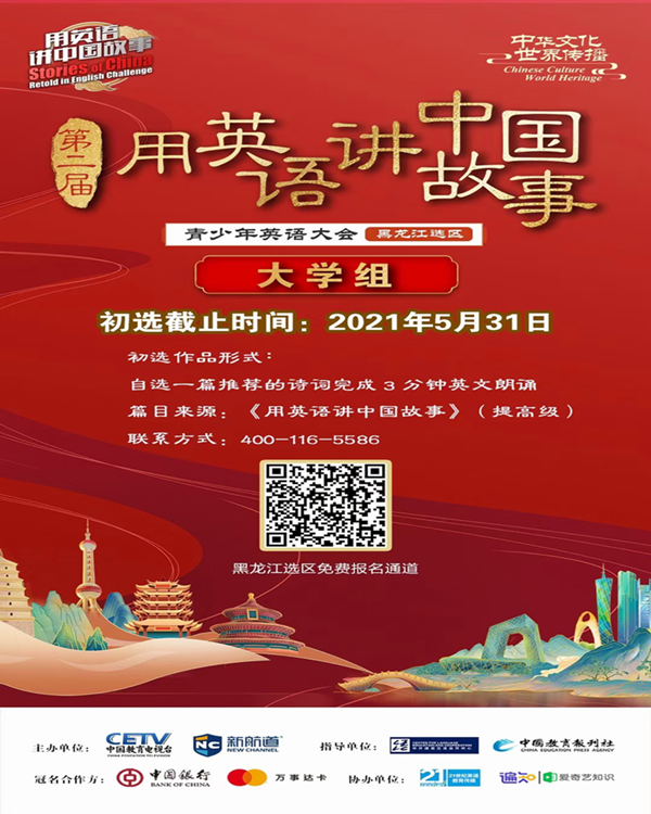 “用英语讲中国故事”活动,是中国教育电视台与新航道国际教育集团联合发起的一项面向全国青少年员工,用英语传承和弘扬中华优秀文化的素质教育活动。活动旨在落实习近平总书记在党的十九大报告中提出的“讲好中国故事,展现真 实、立体、全面的中国,提高国家文化软实力”要求,通过英语演讲、中华才艺展示等形式为广大青少年提供一个弘扬中华优秀文化、与世界交流的平台,充分展示各地英语教学改革和素质教育的丰硕成果。现将活动具体事宜通知如下: