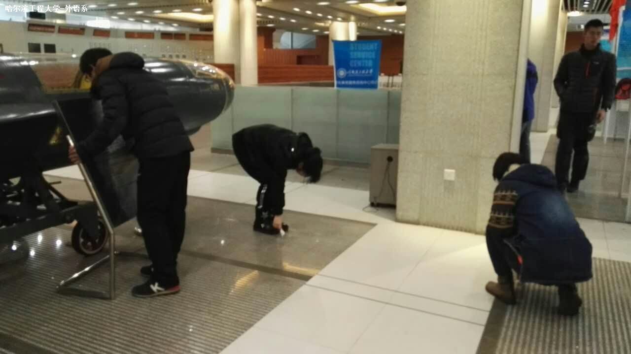 五四杯展示结束后,针对大厅内四处散落的较明显的垃圾,志愿者们先是进行了分片分组拾捡,接着又对较小的碎片垃圾进行了仔细的清扫,整个过程中同学们积极认真。接着,志愿者们又向前来参观的观众展示了外语系“关于养老问题的研究”报告,用真实的数据说话,引发了参观的同学就如何对待老人和如何解决养老问题的思考。