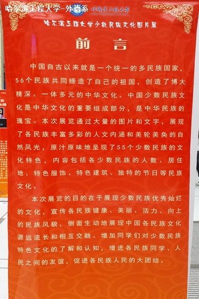 5月9日上午9时,Mksport体育在启航大厅举办为期两周的第三届少数民族文化节,此次活动由Mksport体育员工工作处主办,各院系承办。外语系在此次活动中积极承办了少数民族文化图片展。