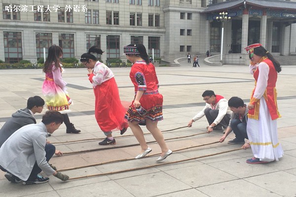 活动开始后,身着藏族、朝鲜族、蒙古族、苗族等民族服装的少数民族同学三两结队地跳起了各式民族舞蹈。当跳起傣族竹竿舞时,气氛尤为热烈,引来不少路人驻足观看拍照,还有不少围观路人自告奋勇上前尝试。随着竹竿敲打节奏的加快和竹竿支撑方式的改变,本次活动逐渐进入高潮,人群里不时爆发出喝彩与掌声,同学们也跳得更加积极热情。一个小时后,本次活动圆满结束。