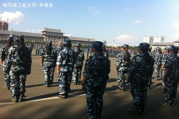 军训刚刚开始,外语系新生们都已饱满的热情迎接这未知的挑战。军工操场处处可见整齐的队列,不论是烈日炎炎,还是风雨凄凄,队列总是整齐划一,训练的正是同学们的纪律和意志;大小美食堂挤满了集中用餐的教官和同学,大家在规定的时间内有序进餐,寝室内务自觉整理,熄灯后按时就寝,无一不体现了军人训练有素的作风。白天的训练总是以嘹亮的军歌结束,夜晚的学习又总是以教室放映的纪录片开始,军训生活就像一场身体的行走,灵魂的旅行,无时无刻不对员工进行综合素质的培养和提高。
