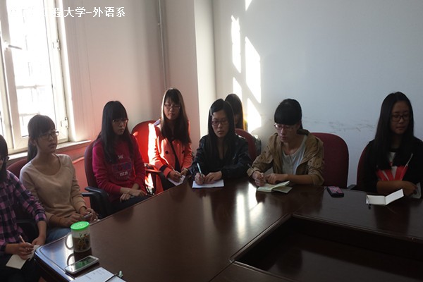9月11日早7点10分,外语系团委员工会在基础楼402召开新学期第一次例会,出席会议的有外语系辅导员由春桥以及团委员工会的主要干部。