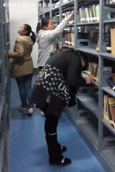 本次活动是这学期以来效率最高的一次,仅仅出动了12个志愿者,历时将近一个小时就将一层俄语书全部规整好。下午4点半,志愿者们准时到达了图书馆门口,首先清点了每个班级的人数并且进行签到,然后青协负责人带领大家来到图书馆一楼的自习室,找到了本次活动的图书馆负责人李老师。在李老师的带领下,大家自动地分成了三组,分别对堆放杂乱的各种书籍进行了分类,并把所有书籍按顺序摆放回书架上。