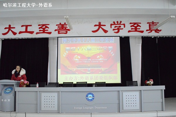 11月22日上午10时整,由外语系团委组织部主办的学习十八届三中全会活动在基础楼501如期开展。本次活动由外语系团委组织部部长费煜红担任主持并做主讲人,外语系团委和员工会成员参加了本次学习活动。