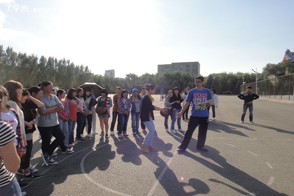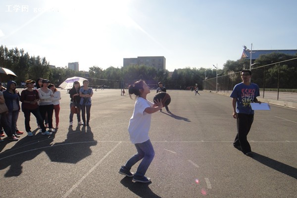 9月16日14:00,外语系全体女生准时来到军工操场,为即将开始的外语系女生投篮比赛做好准备。