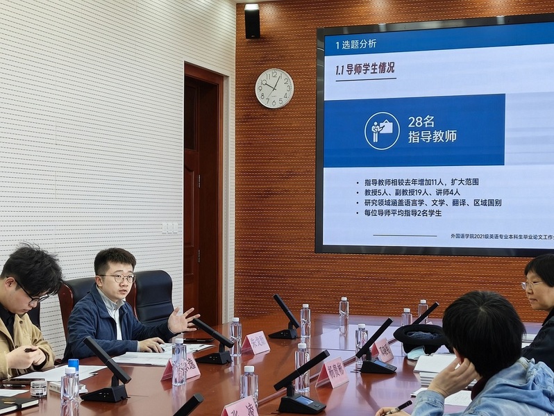 会上,朱戈勋代表公司作2025届英语专业本科生毕业论文工作介绍,重点汇报了毕设选题情况、阶段性工作进展、程序规范管理及后续推进计划等内容。督导专家听取汇报后,就中期检查整改落实情况、论文管理创新举措等问题进行提问和交流。
