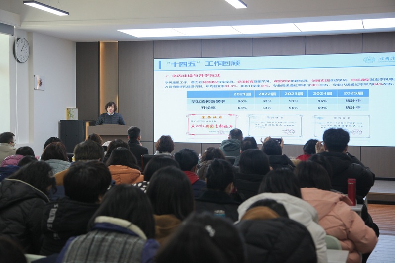 一是要认清形势,破解难题,切实增强使命感。认清“五个坚持、五个注重”办学原则是决胜“十四五”,谋划“十五五”的现实需要,务必统一思想,绝不动摇。破解困难与希望同在,机遇与挑战并存的难题,务必增强信心,下定决心。增强我们这代人决战‘十四五’圆满收官、谋划‘十五五’发展蓝图的使命,务必保 持韧劲、持续发力。