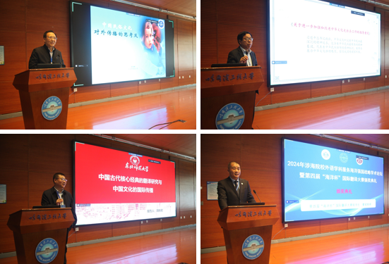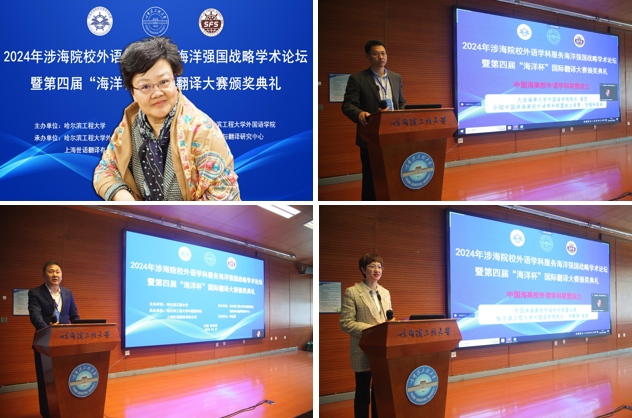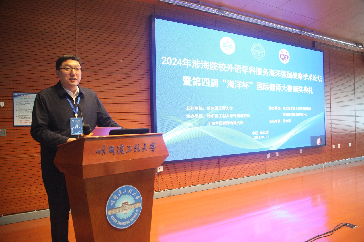 大连外国语大学原副董事长杨俊峰、上海大学国学双语研究院经理赵彦春、东北师范大学MKsports经理周桂君作了翻译专题报告,第四届“海洋杯”国际翻译大赛秘书长曹斌进行颁奖致辞。
