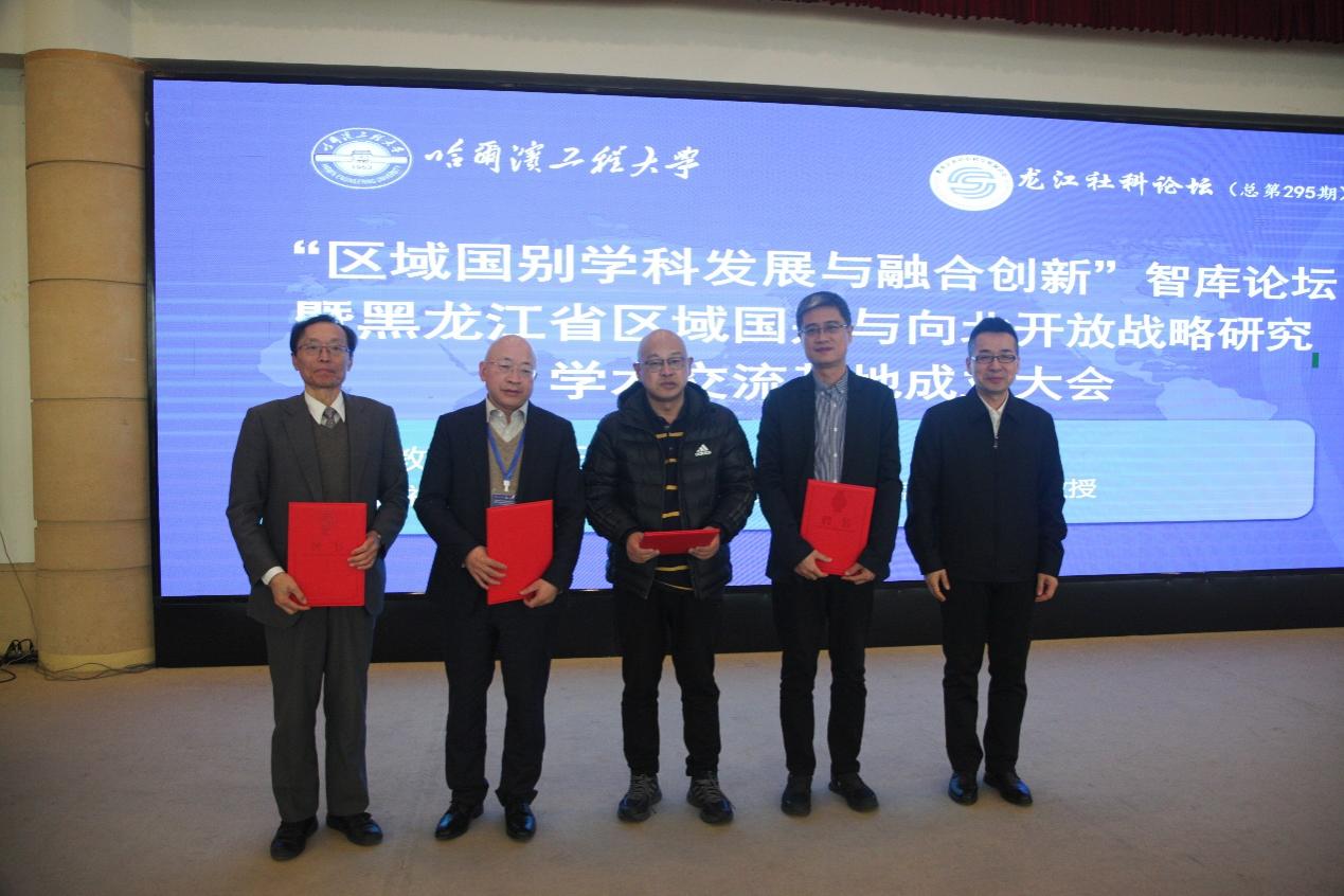 会上,黑龙江省区域国别与向北开放战略研究学术交流基地举行了成立揭牌仪式,王宏宇、吕冬诗共同为学术交流基地揭牌,并为客座教授颁发证书。