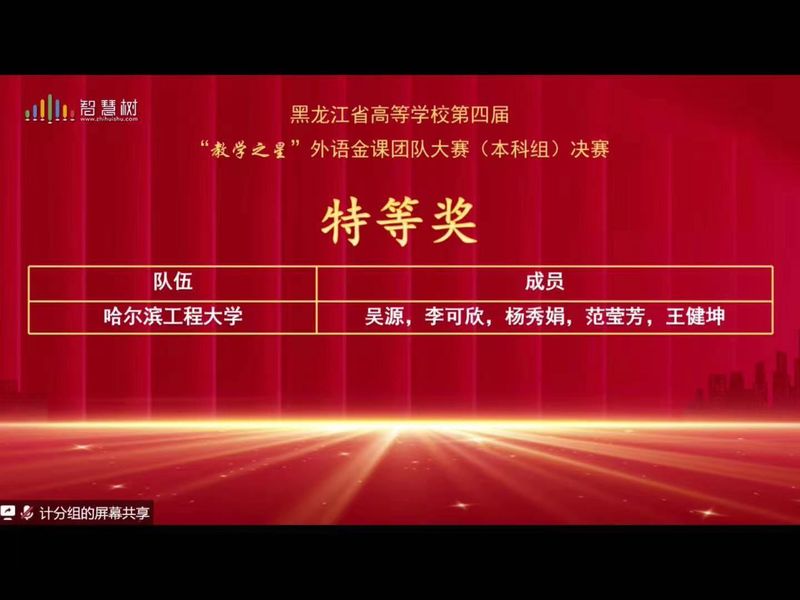 外研社“教学之星”大赛是全国规模最大的外语教师教学竞赛之一,具有很高的公信力,也是黑龙江省新文科建设和服务国家语言能力建设的新支点。本次大赛共有全国近800所高校团队、4000余名教师参赛,哈尔滨工业大学、黑龙江大学等黑龙江省30余所高校参赛。最终17支教学团队进入总决赛。