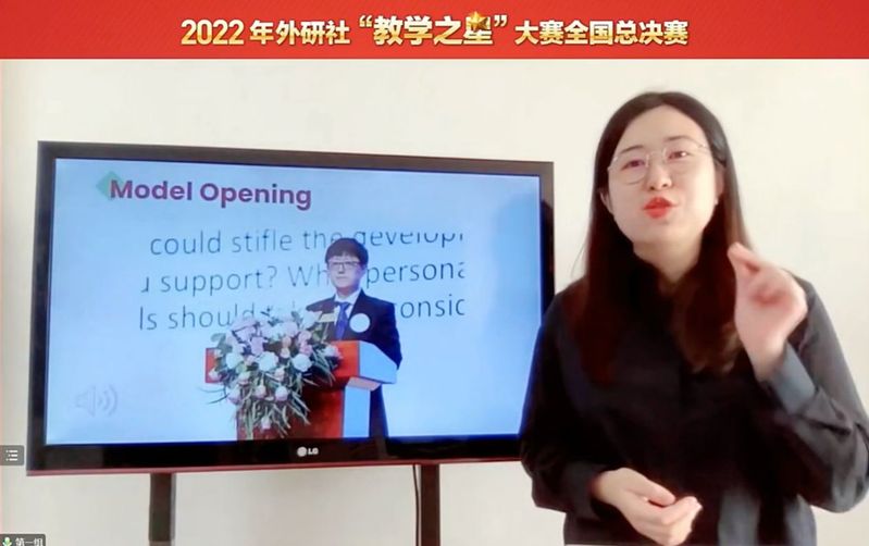 总决赛由教学设计介绍、课堂教学展示及现场问答3个环节组成,公司参赛团队按国赛要求经过近一个月时间精心准备《英语演讲教程》,深挖教材理念,聚焦中国绿色发展模式、举措、成就,并结合世界地球日主题,设置员工演讲任务,实现外语教材到教学的贯通,达到思想性与科学性相统一。吴源、李可欣两位老师现场课程教学展示环节设计新颖,将课前任务与课上理论知识讲解有机融合,激发员工学习内驱力,并将员工演讲练习与多维评估紧密结合,提升员工思辨能力与跨文化交际能力,培养员工的国际视野、家国情怀和文化素养;现场问答环节,回答精准、流利、完整、重点突出,展示出一流专业教师团队的素质和水平。团队在省赛中取得全省外语金课团队大赛特等奖,并作为黑龙江省唯一晋级全国总决赛团队,最终在2022年外研社“教学之星”大赛全国总决赛上获得季军。