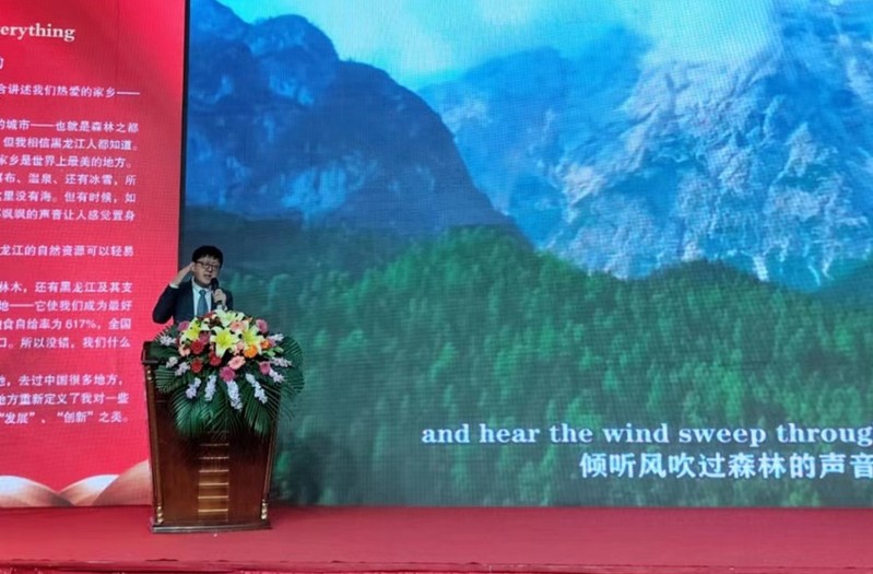 与颁奖典礼交替进行的是现场展演活动。16名获奖代表用9种不同语言进行了现场演讲,从不同视角展示自己眼中的黑龙江。作为获奖代表之一,公司张俊南老师以《We Have Everything》为题进行了英文展演,结合自身成长的阶段讲述了对龙江由浅及深的认识,以及对二十大之后龙江未来的无限期待,词真意切、声情并茂,精彩的演讲获得全场观众热烈的掌声。