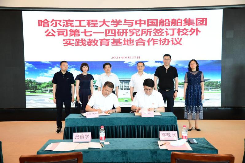 中国船舶集团公司第七一四研究所人力资源部主任王楠与外语系主任朱殿勇现场签署了校外实践教育基地合作协议书。
