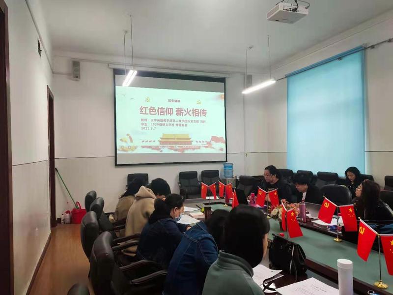 5月7日,大学英语教研部第二教学团队党支部与2020级研文学班团支部在41#417召开了题为“党史溯源,守正创新”的师生联讲党史创新故事分享会。故事会由党员教师刘丹主持,第二教学团队全体教师、文学班全体研究生参加活动。