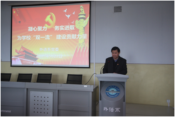 系党委书记赵欣同志代表上届分党委作了题为《凝心聚力 务实进取 为公司“双一流”建设贡献力量》的工作报告,对上届系党委四年来的工作情况进行了梳理和总结,肯定了系党委在发挥政治核心作用、学习十九大精神、落实全国思政工作会议精神、开展“两学一做”学习教育、开展群团工作及落实党风廉政建设责任制等方面工作取得的成绩,同时也指出党建工作与中心工作有机融合在“找点”方面需要进一步深化、在“双融合”“双促进”方面需要进一步加强。报告明确了外语系党委下一阶段工作任务,按照公司党委工作部署和要求,以贯彻落实全国教育大会精神为主线,以“全国党建工作样板支部”创建为牵引,以党支部标准化规范化建设为抓手,以实现党务和中心工作有机融合为突破口,全面提高基层党建工作质量和水平,为公司“双一流”建设贡献力量。
