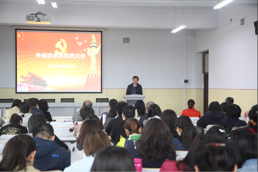根据公司党委统一部署,外语系党委于2019年5月22日中午在41#422会议室召开了全体党员大会。会议由赵欣书记主持,106名师生党员参加了此次会议。
