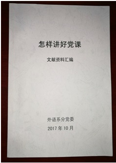 讲党课、讲好党课是基层组织书记是落实“两学一做”学习教育的基本要求。为做好这门功课,练好这项基本功,系党委编撰了《怎样讲好党课》专题培训材料,既有理论分析、观点阐述、也有经典案例,并于2017年10月16日发放至系党委委员、各党支部支委成员,要求大家通读全文,精读重点,结合党支部实际工作思考“我的党课如何讲”,为支部书记讲党课专题培训研讨做好课前准备。