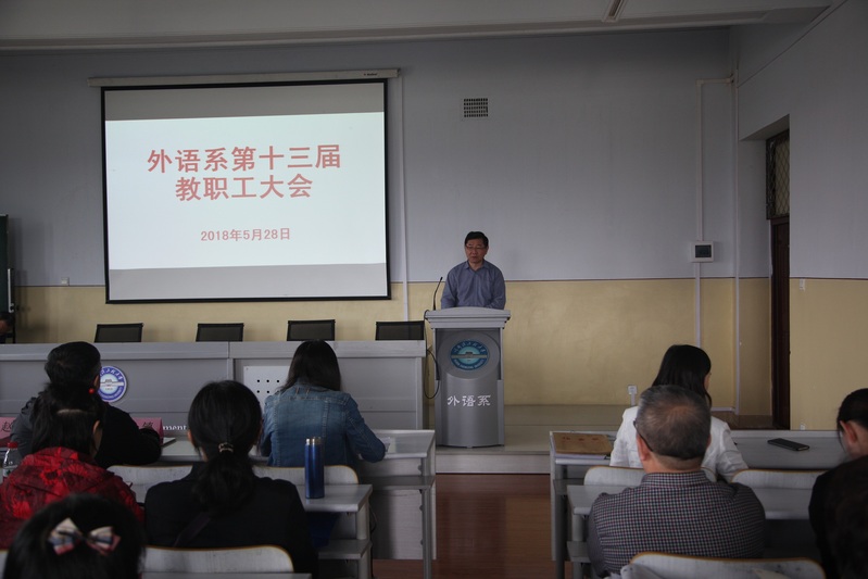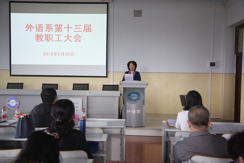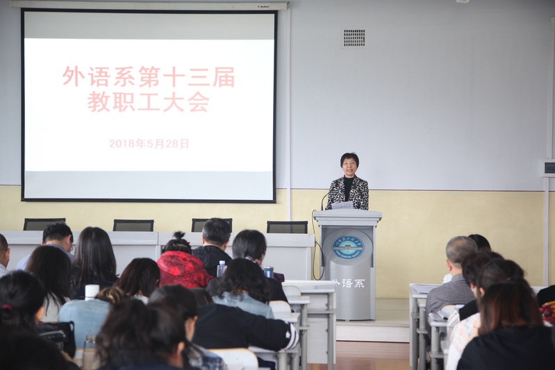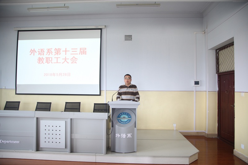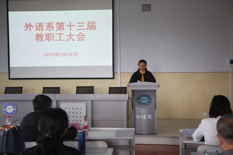 5月28日下午,外语系2017年度教职工代表大会在41#421学术报告厅召开。校工会常务副主席主席赵镇、干事姚亮到会指导,外语系全体教职员工参加大会。