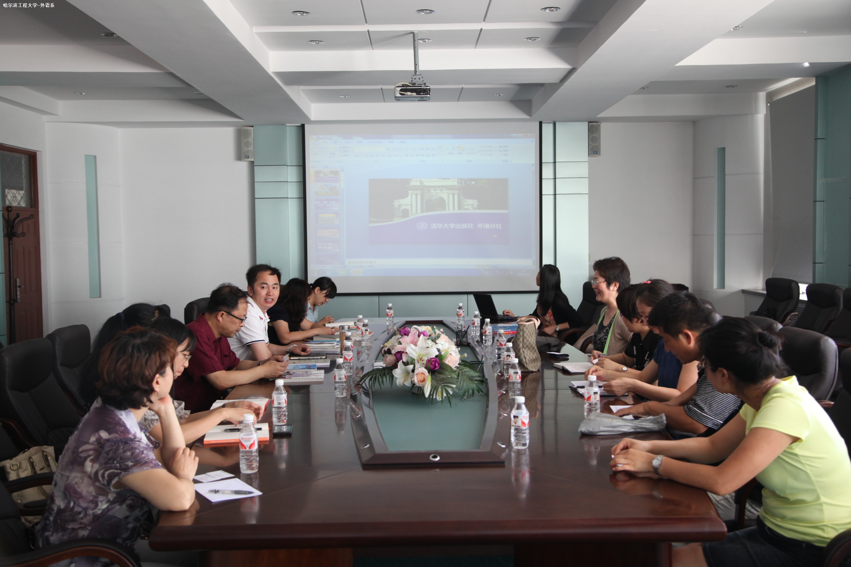 调研交流会上,王庆忠副主任代表外语系对清华大学出版社外语分社社长一行表示热烈欢迎,并希望在合作共赢的基础上建立更加紧密的联系。