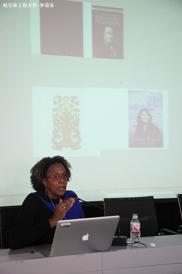 Memoir (回忆录)不仅是文学领域的一个重要体裁,也是当今美国社会领域非常流行的词汇,很多人愿意用这种形式讲述自己的特殊经历。Graham教授首先定义了memoir,并详细讲解了它与自传、小说和其他文体的差异。她指出,对于memoir的研究已经从文学领域扩展到社会的其他领域,并且可以从多个学科角度研究memoir文本。随后,Graham教授分析了memoir广泛流行的原因,这与科技发展、全球化、文化市场需求密不可分。Gramham教授认为memoir使作者、读者和出版商之间形成相互依存的三角关系。最后,Graham教授与在场师生探讨了memoir的界定、发展历史、研究方法等问题。