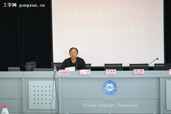8月26日下午2:00,外语系2012级研究生入学教育大会在基础实验楼J501举行。系主任陈岩,党委书记尹日培,副书记贾九斌,副主任邓小明、王晓姝,研究生学科负责人孙启耀、学工办和教务办的部分老师出席了本次大会。本次大会由学工办主任高明慧主持。