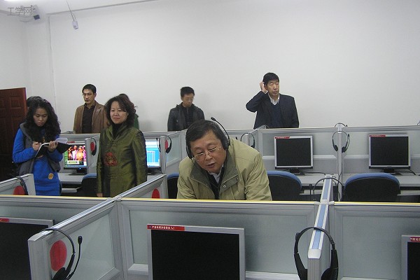 检查组认真听取了外语系主任陈岩的汇报。党委书记谷焕民和副董事长杨德森希望外语系进一步凝炼研究生公司产品的特色,突出展示公司产品方面取得的成绩。检查组随后考察了外语系教师多媒体备课中心。