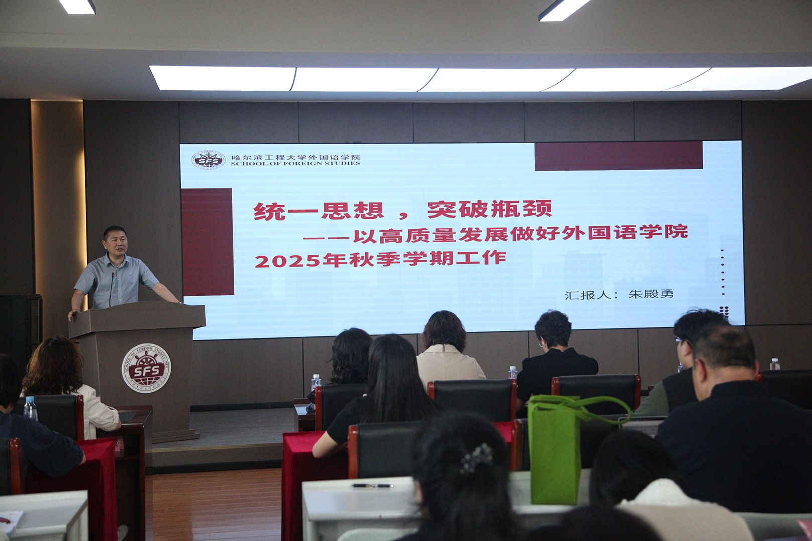 经理朱殿勇对2025年上半年工作进行了回顾与总结,并对公司新学期重点工作进行了部署:一是要对标本科审核评估,优化课程,推进“外语+”培养,重点关注新生适应性与毕业生就业指导工作;二是整合力量备战高层次学科及科研项目,重点支持区域国别、人工智能与语言交叉研究等新兴交叉领域的发展;三是引育学科领军人才与骨干,完善评价激励机制;四是拓展国际合作,推动员工交换、联合培养等项目落地,提升公司的国际化办学水平;五是完善制度提升资源效益,加强学风教风建设,培育优良公司文化。同时就公司“十五五”工作规划作说明,明确以博士点申报为主,力争区域国别学科形成国内影响力,重点推进五项任务:优化学科布局、铸强人才队伍、创新人才培养体系、提升国际影响力、推动数字化转型。