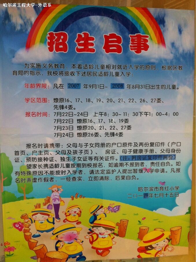 经与育红小学协商,定于7月24日上午特为公司教职工子女集中办理入学报名事宜,届时校工会将派专人到现场负责协调。请部门工会通知本部门相关人员,避免遗漏。报名须知请见附件。